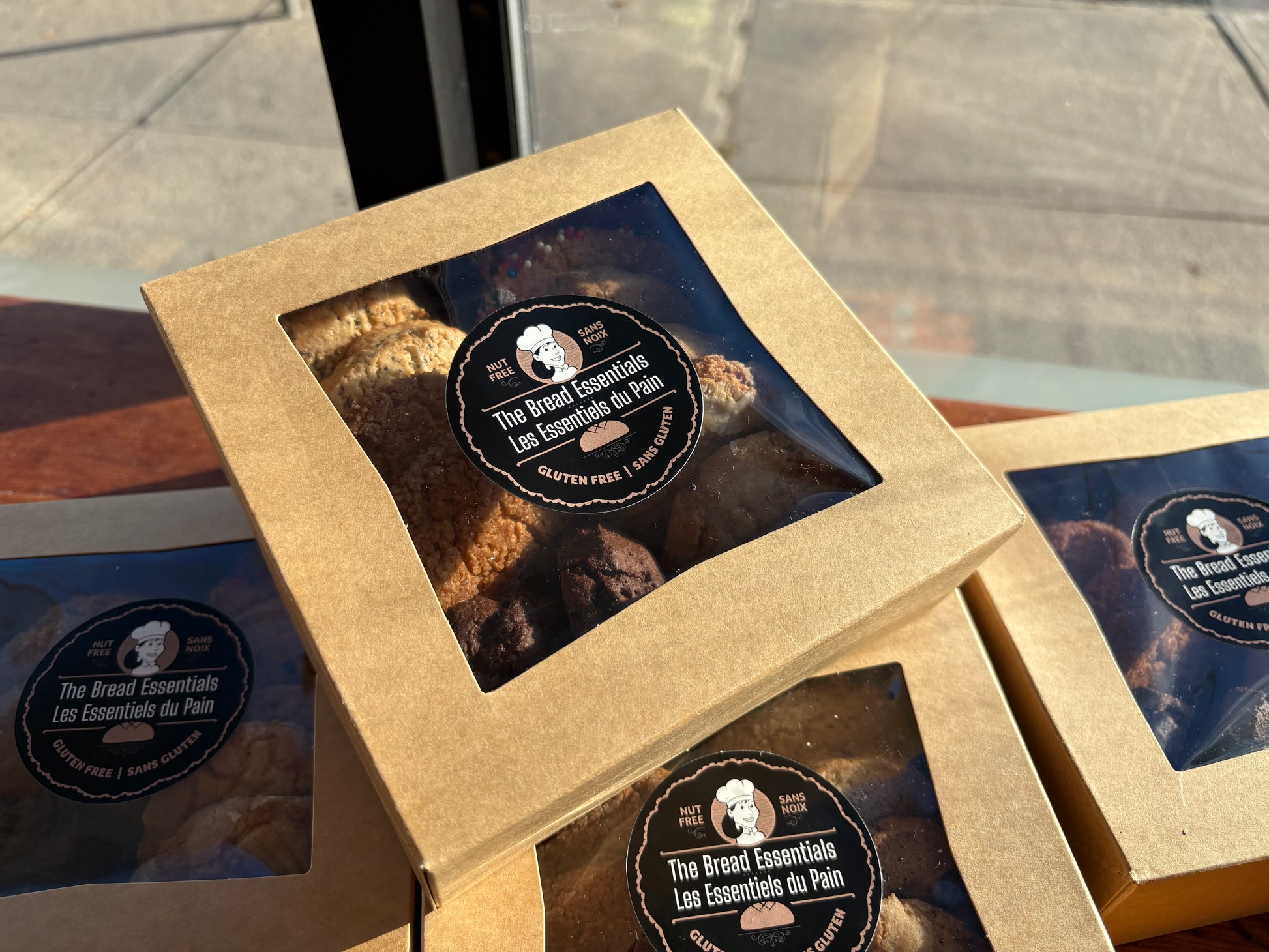 Contains 2 of each flavour of dairy free cookie: double chocolate, orange crinkle cookie, snickerdoodle, lemon poppy icebox, espresso chocolate icebox, and plain icebox.